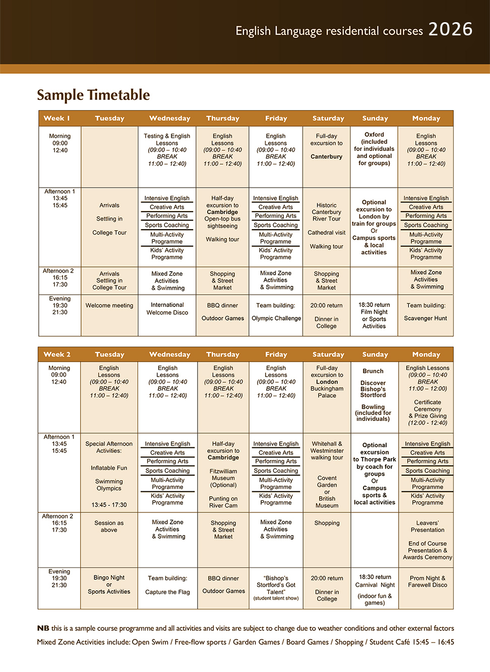 - En BISHOP’S STORTFORD COLLEGE ( a 1h15 del aeropuerto de Heathrow y a 30’ del aeropuerto de Stansted )